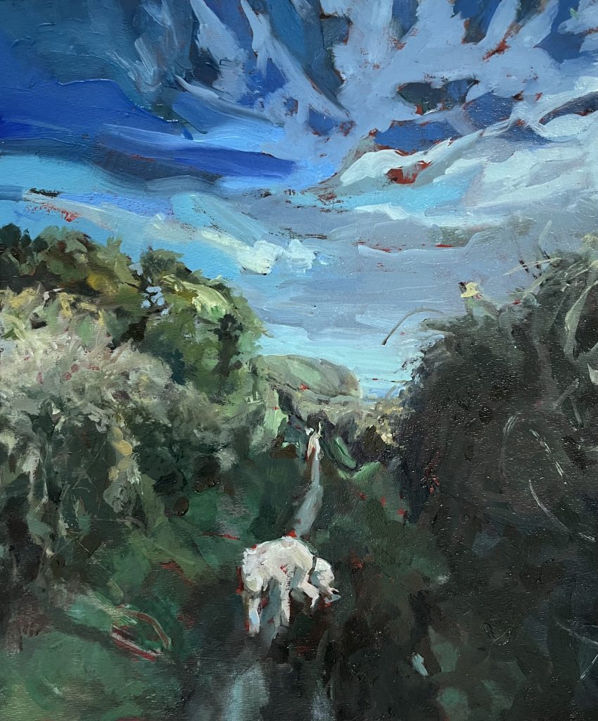 Walking Out at Goat Ledge, oil on wood panel, 40 x 50 cm, 2025