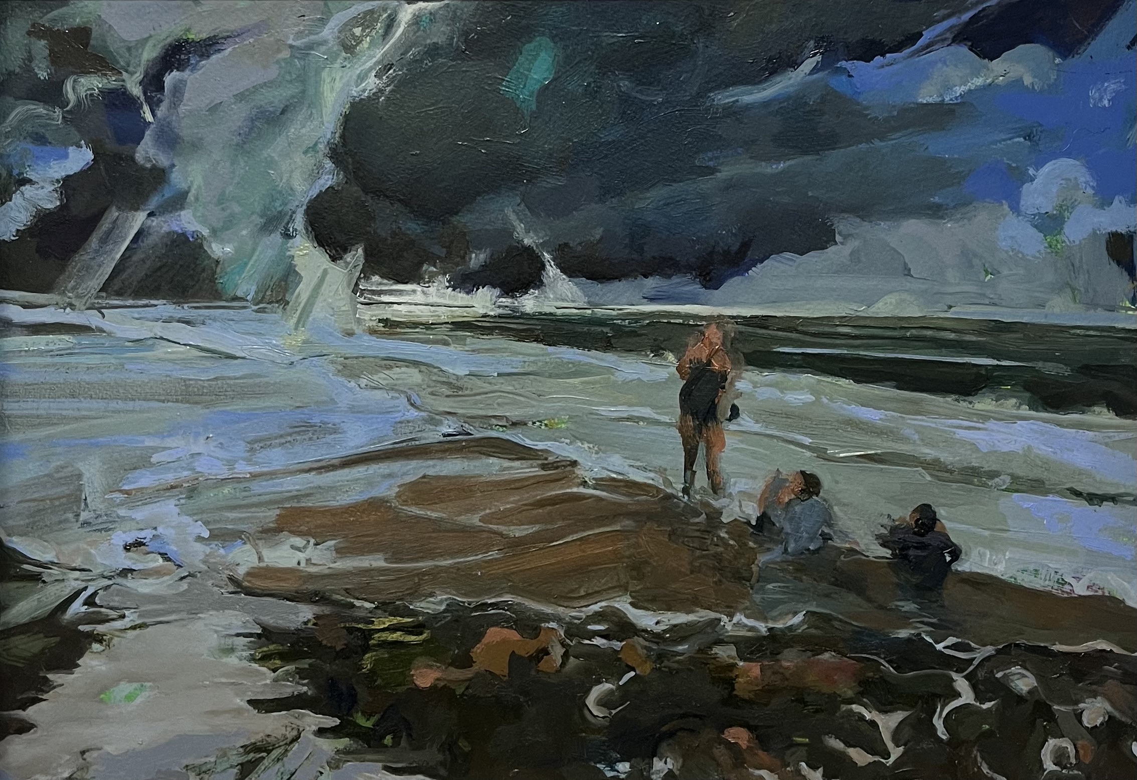 I paint land/seascapes, mostly related to East Sussex, the area I live in. I value directness, immediacy, atmosphere and authenticity of light and feeling. I take inspiration from the areas unrelenting beauty and I am interested in the how people – and sometimes animals – interact with the natural world.
