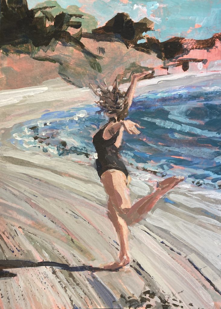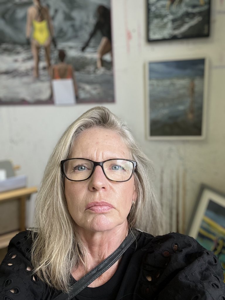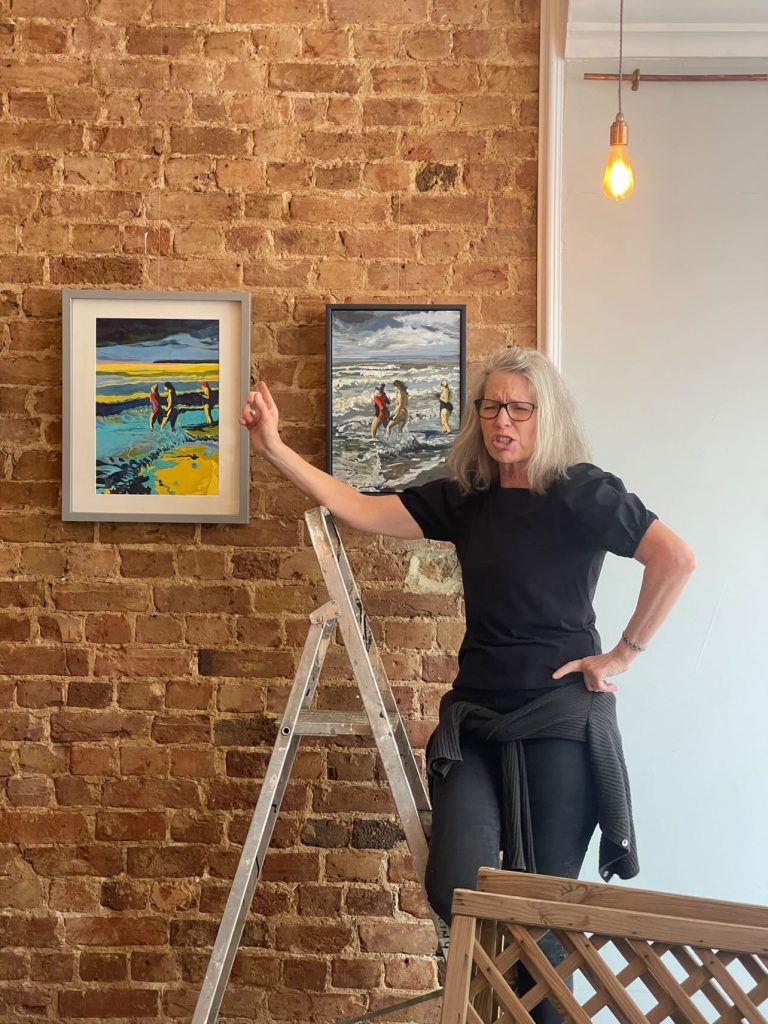 Predominantly a  painter of sea/landscapes and still lifes, Samantha will sometimes place figures within her  landscapes, and her still lifes often feature flowers and plants from her own garden, as well as from her walks on the South Downs. Her work is colourful. She uses acrylics and oil, working both in the studio and plein air. She seeks to catch something of the moment in her paintings – to capture the essence of the scene and invites the viewer to share this vision.